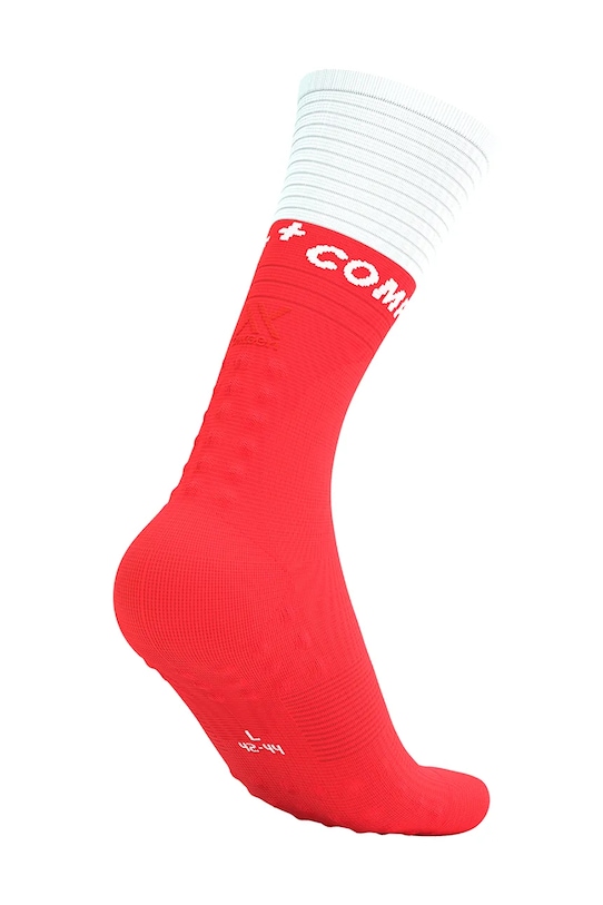 Длинные носки из коллекции Compressport. Изготовлены из эластичного материала, обеспечивающего полную свободу движений. Технология 3D.Dot поглощает удары, защищает чувствительные зоны, такие как ахиллово сухожилие, и обеспечивает микромассаж для улучшения кровотока. Она также обеспечивает отличную поддержку стопы внутри обуви, снижая риск перегрева и образования мозолей, вызванных чрезмерной активностью. - Эргономичный крой повышает комфорт использования во время активности. - Носки помогают снизить вибрацию мышц, что позволяет дольше поддерживать интенсивность упражнений и отодвигает усталость ног. - Ребристая отделка предотвращает соскальзывание носков.