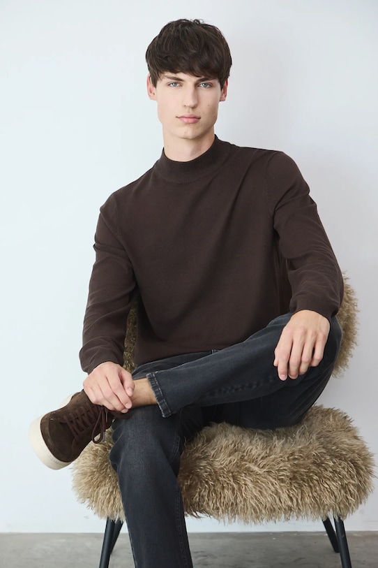 Свитер из коллекции «Medicine». Модель с воротником-стойкой, выполненная из гладкого трикотажа. - Этот свитер прямого кроя обеспечивает комфорт и универсальный вид. Он мягко облегает фигуру, не перетягивая её. Классический и простой, он прекрасно сочетается как с элегантными, так и с повседневными образами. - Длинный рукав. - Модель с водолазкой. - Отделка ребер. - Гладкая трикотажная ткань. - Длина рукава: 65 см. - Длина: 68 см. - Ширина под мышками: 54 см. - Размеры указаны для размера: M.