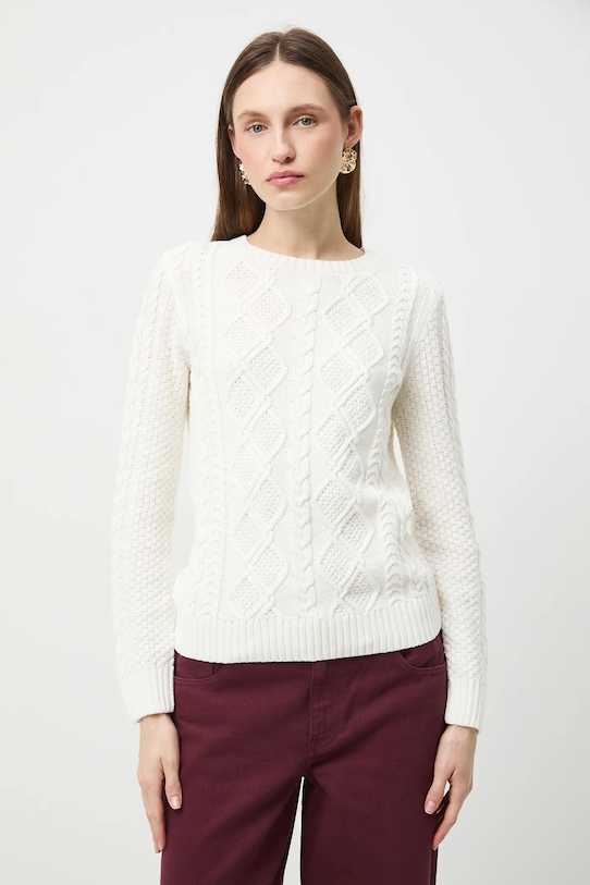 Свитер из коллекции «Medicine». Круглый вырез горловины выполнен из трикотажного полотна с декоративным переплетением. - Этот облегающий свитер плотно облегает тело и естественно подчёркивает силуэт. Подходит как для элегантных, так и для повседневных образов. - Длинный рукав. - Круглый вырез. - Отделка ребер. - Плетение кос. - Плотная, удобная трикотажная ткань. - Длина рукава: 61 см. - Длина: 61 см. - Ширина груди: 43 см. - Размеры указаны для размера: S.