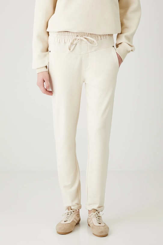 Спортивные брюки из коллекции Medicine. Изготовлены из гладкого трикотажа. - Обычная посадка. - Обхват талии обычный. - Эластичный пояс со шнурками. - Накладные карманы. - Гладкий материал. - Ширина талии (до растягивания): 35,5 см. - Ширина талии (после растяжения): 44,5 см. - Ширина бедер: 50 см. - Высота талии: 27 см. - Ширина штанины внизу: 16 см. - Длина по внутреннему шву: 68 см. - Размеры указаны для размера: S.
