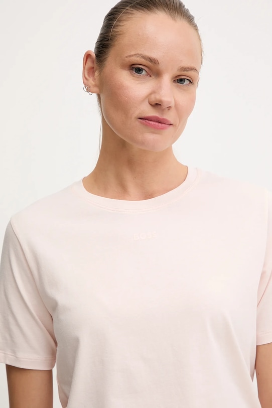 Эта футболка BOSS изготовлена из гладкого джерси. Она изготовлена из дышащего материала с высоким содержанием хлопка. - Изделия линейки BETTER BOSS не менее чем на 60% изготовлены из материалов, полученных более экологичным способом. - Свободный крой, обеспечивающий полную свободу движений. - Классический круглый вырез. - Тонкий, эластичный трикотаж. - Длина: 63 см. - Ширина под мышками: 52 см. - Размеры указаны для размера: S.