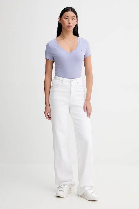 Эта футболка из коллекции Tommy Jeans выполнена из тонкой, эластичной ткани. Модель выполнена из исключительно комфортного, дышащего хлопкового материала. - Эта модель содержит регенерированные хлопковые волокна. Новые волокна и пряжа производятся из старых текстильных отходов и используются для производства новой одежды. - Приталенный крой, подчеркивающий силуэт. - Декоративный, заостренный вырез. - Короткий рукав. - Логотип бренда вышит спереди. - Длина: 58 см. - Ширина под мышками: 42 см. - Размеры указаны для размера: S.