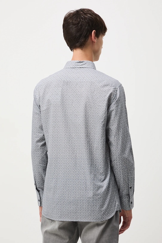 Эта рубашка из коллекции Medicine выполнена из узорчатой ткани и имеет классический, слегка жесткий воротник. - Приталенная рубашка облегает тело, естественно подчеркивая силуэт и обеспечивая комфорт. - Длинный рукав. - Манжеты на пуговицах. - Слегка усиленный классический воротник Kent. - Застежка на пуговицы. - Ткань с мелким рисунком. - Модель изготовлена из смеси хлопка и лиоцелла. - Окружность воротника: 42,6 см. - Длина рукава: 64,2 см. - Длина: 77,6 см. - Ширина груди: 55,5 см. - Ширина плеч: 47 см. - Размеры указаны для размера: M.
