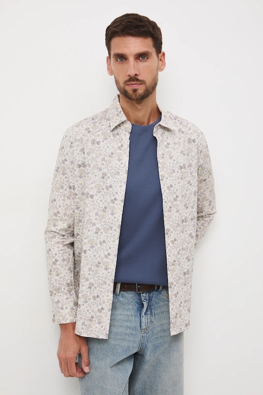 Эта рубашка из коллекции Medicine выполнена из узорчатой ткани и имеет классический, слегка жесткий воротник. - Рубашка прямого кроя мягко облегает фигуру, но не подчеркивает ее, обеспечивая свободу движений. - Длинный рукав. - Манжеты на пуговицах. - Слегка усиленный классический воротник Kent. - Застежка на пуговицы. - Узорчатая ткань. - Узор с растительным мотивом. - Ткань саржевого переплетения. - Окружность воротника: 43,4 см. - Длина рукава: 64,5 см. - Длина: 77 см. - Ширина груди: 56 см. - Ширина плеч: 48 см. - Размеры указаны для размера: M.