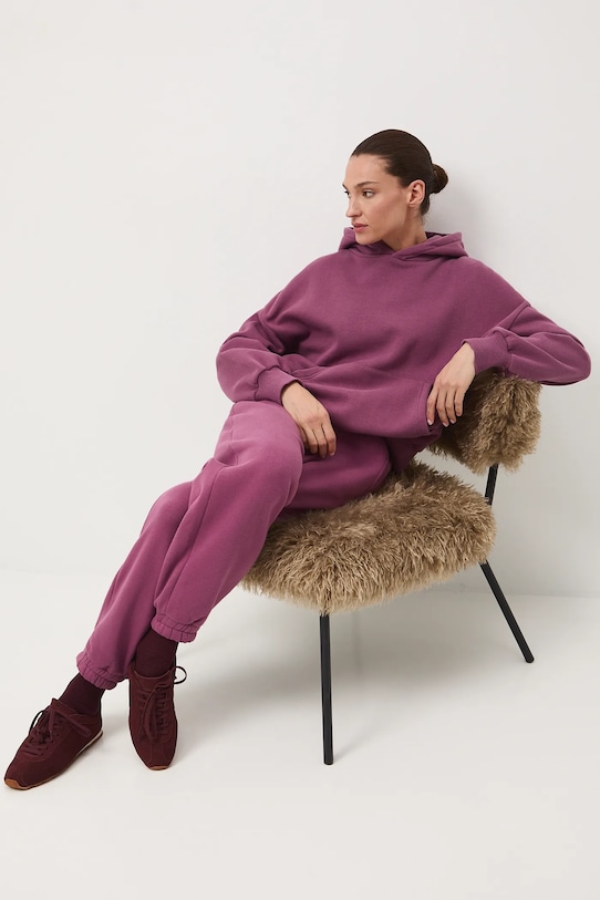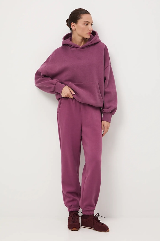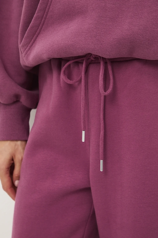 Спортивные брюки из коллекции Medicine. Изготовлены из гладкого трикотажа. - Обычная посадка. - Обхват талии обычный. - Эластичный пояс со шнурками. - Ножки отделаны манжетами. - Накладные карманы. - Гладкая трикотажная ткань. - Ширина талии (до растягивания): 38 см. - Ширина талии (после растяжения): 44 см. - Ширина бедер: 53 см. - Высота талии: 29,2 см. - Длина по внутреннему шву: 71 см. - Размеры указаны для размера: M.