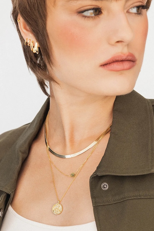 Колье из коллекции ANIA KRUK. Это ожерелье с подвижной подвеской изготовлено из латуни, покрытой 24-каратным золотом.