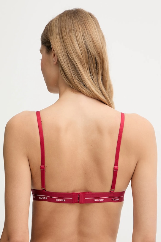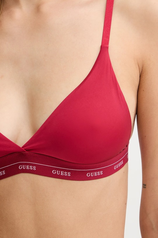 Бюстгальтер с треугольными чашками из коллекции Guess. Изготовлен из мягкой, приятной на ощупь ткани. - Мягкая чашка без косточек и других жестких элементов обеспечивает полный комфорт использования. - Модель отделана эластичной лентой. - Регулируемые бретели обеспечивают оптимальную поддержку груди и позволяют индивидуально подогнать по фигуре, не раздражая кожу на плечах. - Крепление двойными трехступенчатыми крючками.