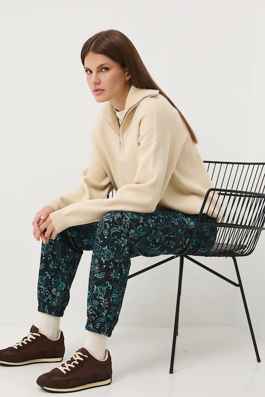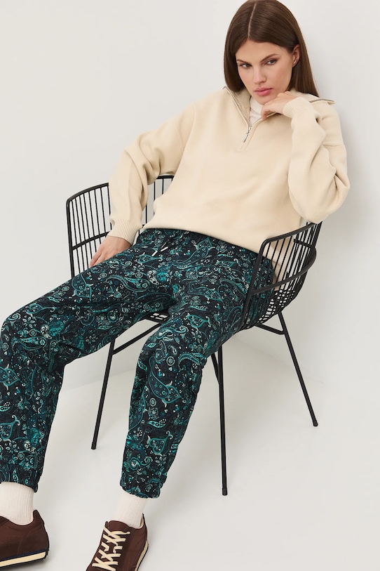 Спортивные брюки из коллекции Medicine. Изготовлены из узорчатого трикотажа. - Обычная посадка. - Обхват талии обычный. - Эластичный пояс со шнурками. - Накладные карманы. - Ножки отделаны манжетами. - Узорчатое трикотажное полотно. - Узор пейсли. - Ширина талии (до растягивания): 36 см. - Ширина талии (после растяжения): 44 см. - Высота талии: 28 см. - Длина по внутреннему шву: 71 см. - Размеры указаны для размера: S.