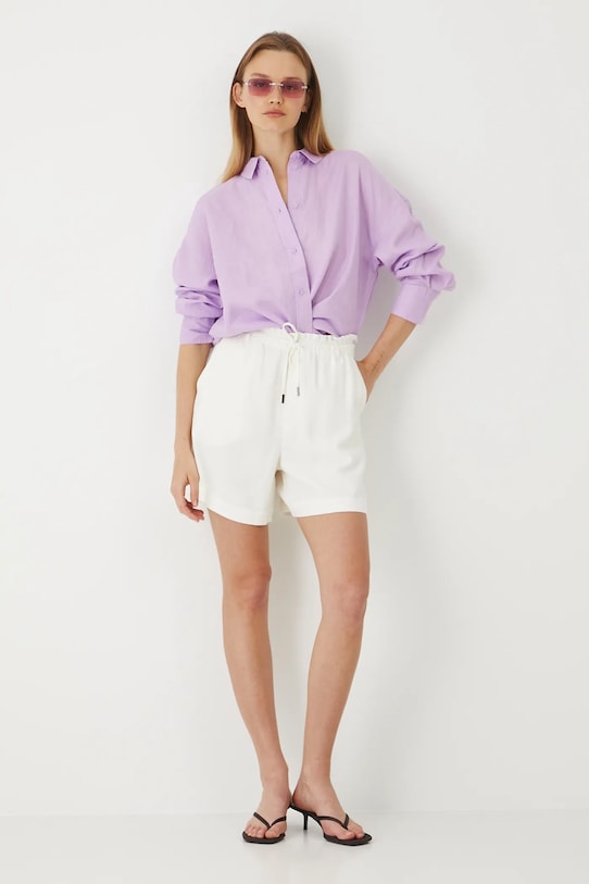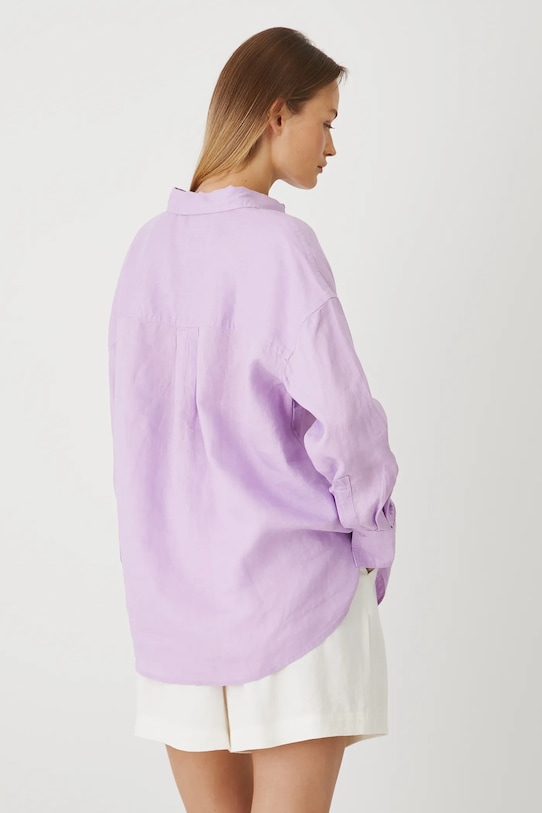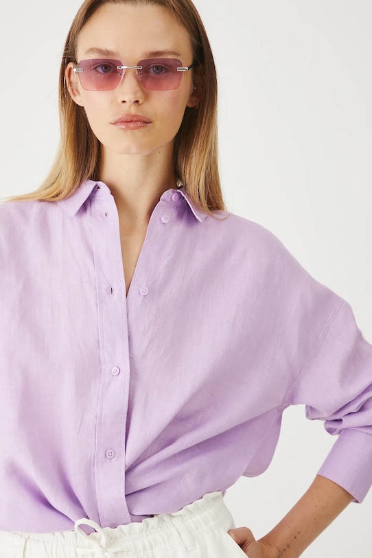 Рубашка из коллекции «Medicine». Изготовлена из льняной ткани, с воротником. - Натуральный, воздушный и прочный материал, изготовлен из 100% льна. - Большой размер. - Длинный рукав. - Заниженная линия плеча. - Манжеты на пуговицах. - Застежка на пуговицы. - Модель с воротником. - Гладкая ткань. - Декоративные разрезы по бокам рубашки. - Длина рукава (от воротника): 74,5 см. - Длина: 74 см. - Ширина груди: 60 см. - Размеры указаны для размера: S.