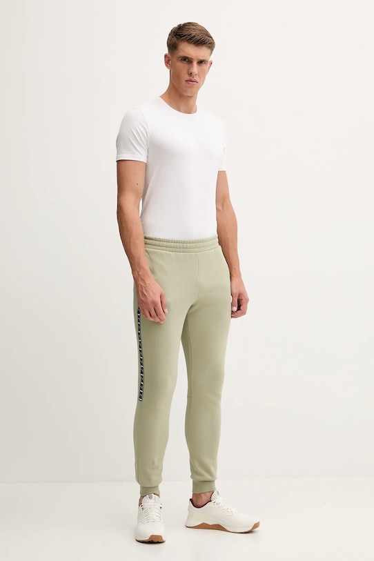 Эти спортивные брюки из коллекции Puma изготовлены из эластичной ткани, обеспечивающей комфорт и свободу движений. Мягкая подкладка внутри обеспечивает дополнительное тепло и мягкость. - Модель из линейки продукции Puma Forever Better, изготовленная из переработанных материалов. - Брюки слегка приталенные на бедрах. - Ножки отделаны удобными эластичными манжетами. - Эластичный пояс и дополнительная внутренняя регулировка ширины с помощью шнурков для предотвращения сползания во время движения. - Два боковых накладных кармана. - Ширина талии: 38 см. - Ширина бедер: 55 см. - Высота талии: 30 см. - Ширина штанины внизу: 12 см. - Ширина штанины: 32 см. - Длина внешнего шва: 105 см. - Размеры указаны для размера: M.