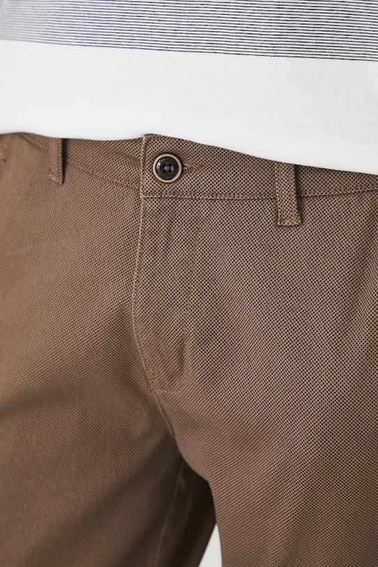 Брюки из коллекции «Medicine». Изготовлены из ткани с мелким рисунком. - Приталенный крой. - Брюки имеют косые карманы - они идеально вписываются в стиль smart casual. - Модель со стандартной талией, застежкой на пуговицы и молнию. - Два боковых накладных кармана. - Ремешок из эко-кожи в комплекте. - Ткань с мелким рисунком. - Ширина талии: 43,5 см. - Ширина бедер: 52,5 см. - Высота талии: 26 см. - Ширина штанины внизу: 16,5 см. - Длина по внутреннему шву: 79 см. - Размеры указаны для размера: M.