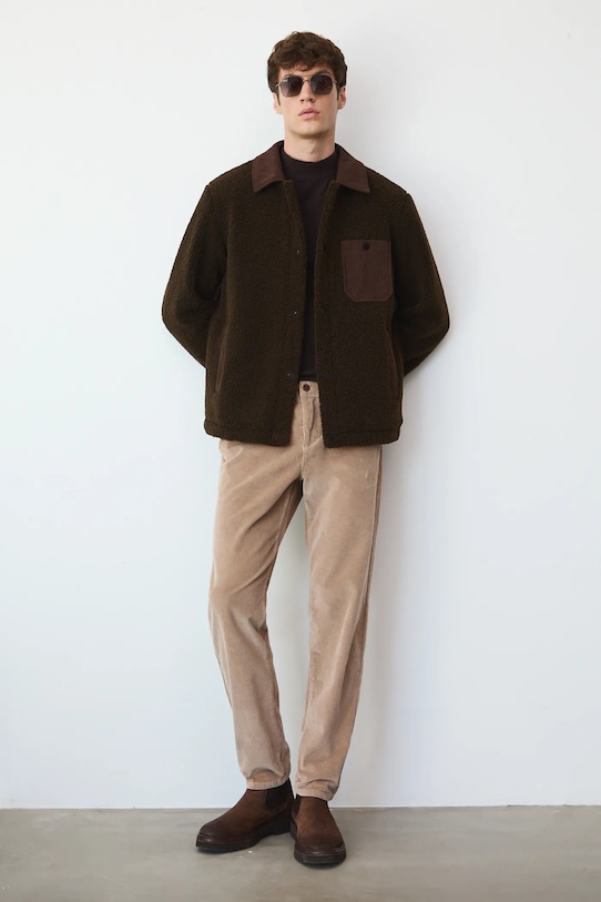 Брюки из коллекции «Medicine». Изготовлены из вельветовой ткани. - Стиль «Чино». - Брюки имеют косые карманы - они идеально вписываются в стиль smart casual. - Модель со стандартной талией, застежкой на пуговицы и молнию. - Накладные карманы. - Гладкая ткань. - Ширина талии: 43,5 см. - Ширина бедер: 54,5 см. - Высота талии: 28,6 см. - Ширина штанины внизу: 18 см. - Длина по внутреннему шву: 78 см. - Размеры указаны для размера: M.