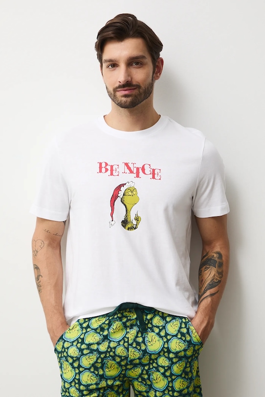 Этот пижамный комплект из футболки и шорт из коллекции Medicine выполнен из хлопчатобумажного трикотажа. - Простой дизайн. - Короткий рукав. - Круглый вырез. - Модель с принтом. - Эластичный пояс со шнурками. - Накладные карманы. - Узорчатое трикотажное полотно. - Рождественская тема, вдохновленная персонажем Гринчем. - Длина: 71 см. - Ширина груди: 55 см. - Ширина талии: 42,8 см. - Ширина бедер: 54,8 см. - Высота талии: 30,3 см. - Длина по внутреннему шву: 21,5 см. - Размеры указаны для размера: M.