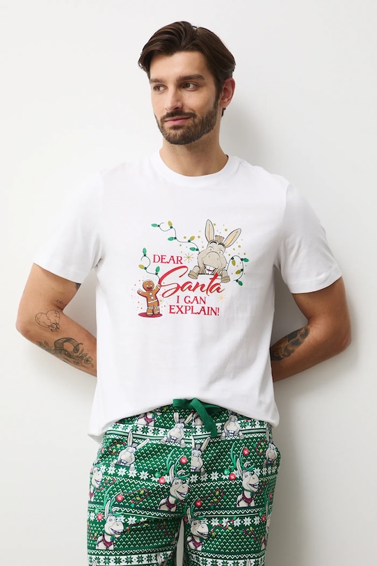 Этот пижамный комплект из футболки и шорт из коллекции Medicine выполнен из хлопчатобумажного трикотажа. - Простой дизайн. - Короткий рукав. - Круглый вырез. - Эластичный пояс со шнурками. - Накладные карманы. - Узорчатое трикотажное полотно. - Тема вдохновлена мультфильмом «Шрек». - Узор с рождественским мотивом. - Длина: 72 см. - Ширина груди: 55 см. - Ширина талии: 42 см. - Ширина бедер: 54,8 см. - Высота талии: 30,2 см. - Длина по внутреннему шву: 21,5 см. - Размеры указаны для размера: M.