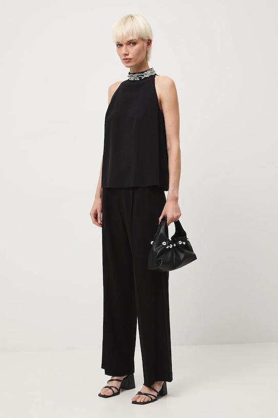Брюки из коллекции «Medicine». Изготовлены из гладкой ткани. - Широкий фасон штанины. - Модель со стандартной талией, застежкой на пуговицы и молнию. - Накладные карманы. - Широкие штанины. - Штанина отутюживается в складку. - Гладкая ткань. - Ширина талии: 38 см. - Ширина бедер: 50 см. - Высота талии: 30,5 см. - Ширина штанины внизу: 28 см. - Длина по внутреннему шву: 79 см. - Размеры указаны для размера: S.