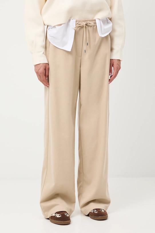 Брюки из коллекции «Medicine». Изготовлены из меланжевой ткани. - Широкий фасон штанины. - Обхват талии обычный. - Эластичный пояс со шнурками. - Два боковых накладных кармана. - Широкие штанины. - Меланжевая ткань. - Ширина талии (до растягивания): 38 см. - Ширина талии (после растяжения): 47 см. - Ширина бедер: 52 см. - Высота талии: 28,5 см. - Ширина штанины внизу: 28 см. - Длина по внутреннему шву: 80 см. - Размеры указаны для размера: S.