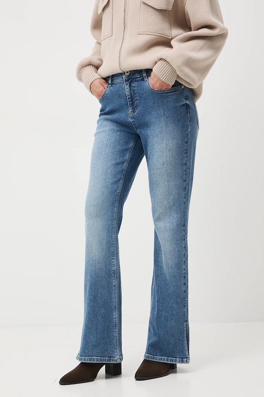 Джинсы-клеш из коллекции Medicine с обычной талией. Изготовлены из стираного денима. - Расклешённый крой – джинсы, облегающие талию и бёдра. Их отличительной чертой является плавное расширение брючин от колена. Крой создаёт эффект песочных часов и уравновешивает пропорции фигуры. - Модель со стандартной талией, застежкой на пуговицы и молнию. - Накладные карманы. - Разрезы внизу штанин. - Декоративно выстиранный деним. - Ширина талии: 37 см. - Ширина бедер: 45 см. - Высота талии: 25 см. - Ширина штанины внизу: 24 см. - Длина по внутреннему шву: 81 см. - Размеры указаны для размера: 36.