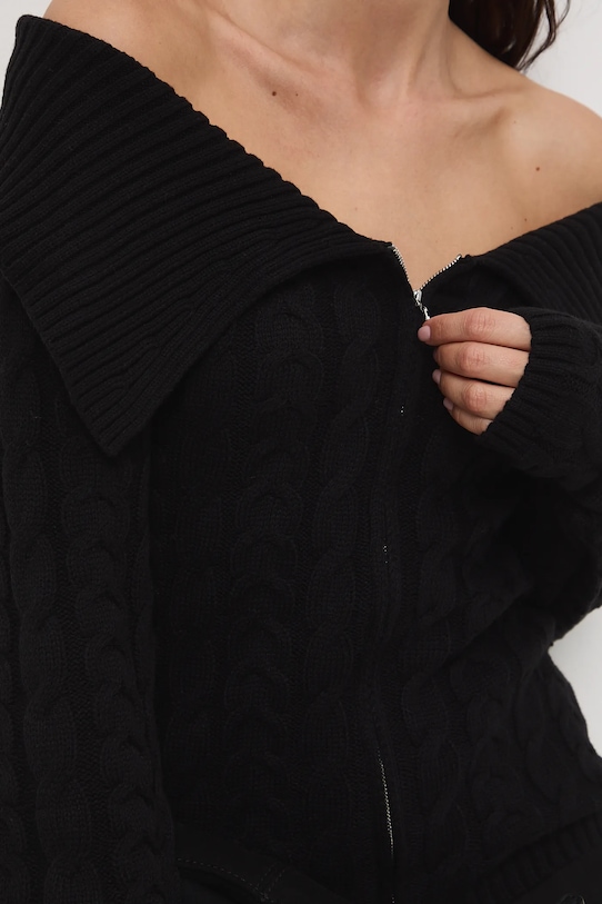 Кардиган из коллекции Medicine. Этот кардиган с круглым вырезом выполнен из фактурного трикотажа. - Приталенный крой. - Длинные рукава реглан. - Испанский вырез. - Застегивается на двустороннюю молнию. - Плетение кос. - Отделка ребер. - Гладкая трикотажная ткань. - Длина рукава: 59,5 см. - Длина: 57 см. - Ширина груди: 43 см. - Размеры указаны для размера: S.