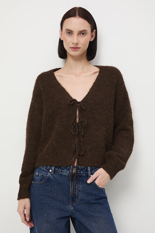 Кардиган из коллекции Medicine. Этот кардиган с острым вырезом связан из шерстяной пряжи. - Этот кардиган прямого кроя обеспечивает комфорт и универсальный образ. Он мягко облегает фигуру, не перетягивая её. Классический и простой, он прекрасно сочетается как с элегантными, так и с повседневными образами. - Длинный рукав. - Заниженная линия плеча. - Острый вырез. - Модель с переплетом. - Отделка ребер. - Меланжевый трикотаж. - Длина рукава (от горловины): 71,3 см. - Длина: 53 см. - Ширина груди: 53 см. - Размеры указаны для размера: S.