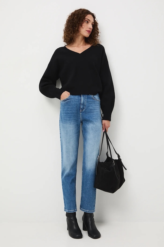 Эти джинсы mom fit с высокой талией из коллекции Medicine выполнены из потертого денима. Mom fit – джинсы в винтажном стиле с более свободным кроем, особенно в области бёдер, и слегка зауженными брючинами. Mom fit визуально сужает талию и подчёркивает бедра, сохраняя при этом комфорт. - Модель с высокой талией, застежкой на пуговицы и молнию. - Накладные карманы. - Контрастная строчка. - Декоративные потертости. - Ширина талии: 34 см. - Ширина бедер: 47 см. - Высота талии: 29,5 см. - Ширина штанины внизу: 17 см. - Длина по внутреннему шву: 70 см. - Размеры указаны для размера: 36.