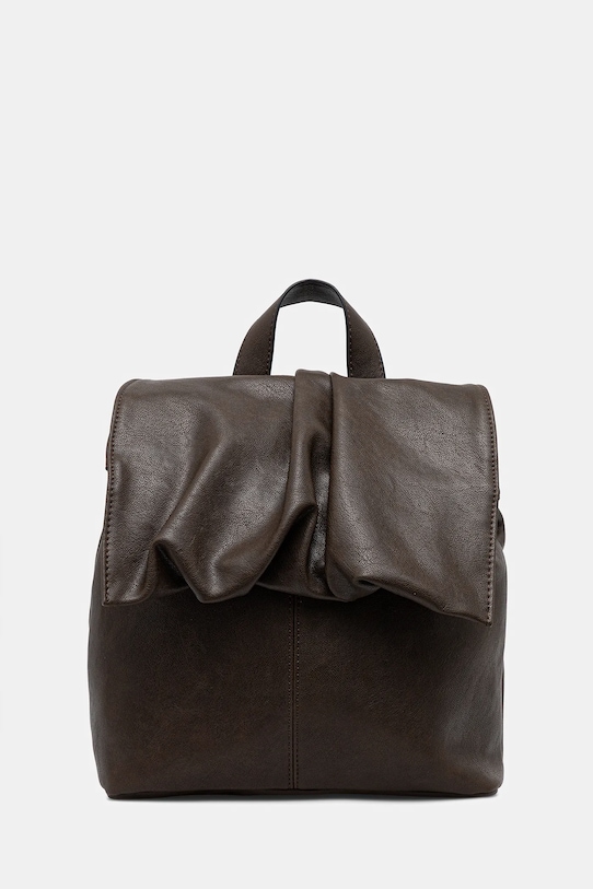 Рюкзак из коллекции «Medicine». Изготовлен из экокожи. - Клапан застегивается на магнит. - Отделение на молнии. - Внутренний карман на молнии. - Внутренние накладные карманы. - Регулируемые, несъемные лямки. - Рукоятка. - Кнопки по бокам для регулировки глубины. - Декоративные оборки. - Модель на подкладке. - Не подходит для формата А4. - Глубина: 13 см. - Высота: 30 см. - Ширина у основания: 27 см.