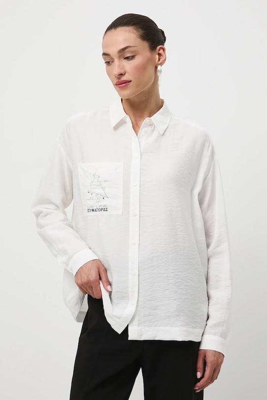Рубашка из специальной коллекции «Medicine – Наука – Слова Мудрости». Изготовлена ​​из набивной ткани.