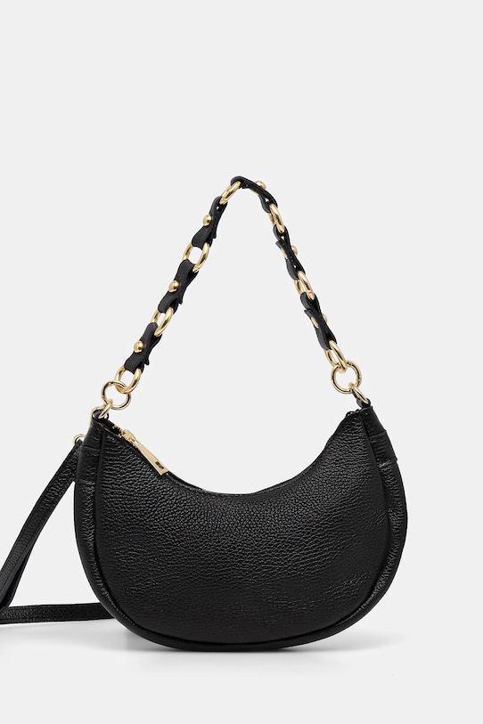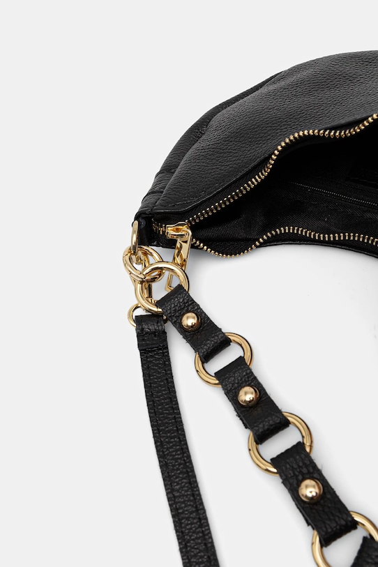 Небольшая сумочка из коллекции Answear.Lab. Модель на молнии из натуральной кожи. - Отделение на молнии. - Внутренний карман на молнии. - Имеет съемную ручку и съемный нерегулируемый ремень. - Не подходит для формата А4. - Входящий в комплект тканевый чехол защищает изделие от пыли. - Минимальная длина ремешка: 70 см. - Максимальная длина ремня: 122 см. - Длина ручки: 35 см. - Глубина: 4,5 см. - Высота: 12 см. - Ширина в самом широком месте: 23 см.