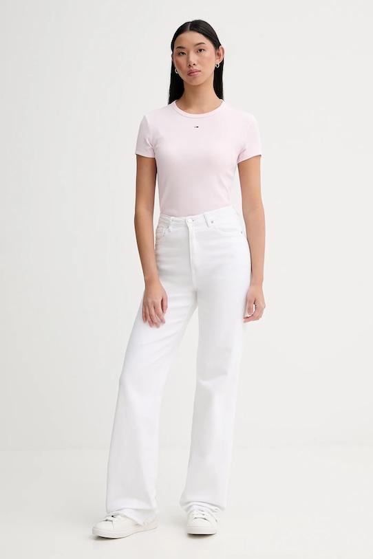 Эта футболка из коллекции Tommy Jeans выполнена из гладкого трикотажного полотна. Это исключительно комфортный материал с высоким содержанием хлопка. - Экологически чистый переработанный хлопок снижает воздействие на окружающую среду за счет сокращения использования химикатов и экономии воды и энергии, улучшая условия жизни и экономическое развитие в регионах производства хлопка. - Обычная посадка. - Классический круглый вырез. - Тонкий, эластичный трикотаж. - Длина: 56 см. - Ширина груди: 39 см. - Размеры указаны для размера: S.