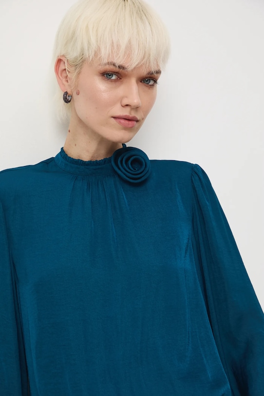 Эта блузка из коллекции Medicine выполнена из гладкой ткани и дополнена декоративным воротником-стойкой. - Обычная посадка. - Длинные, пышные рукава. - Манжеты на пуговицах. - Модель с воротником-стойкой. - Застегивается на пуговицы сзади. - Декоративные оборки. - Декоративный элемент в виде цветка. - Гладкая ткань. - Декоративные вставки. - Длина рукава: 66 см. - Длина: 65 см. - Ширина груди: 51,5 см. - Размеры указаны для размера: S.