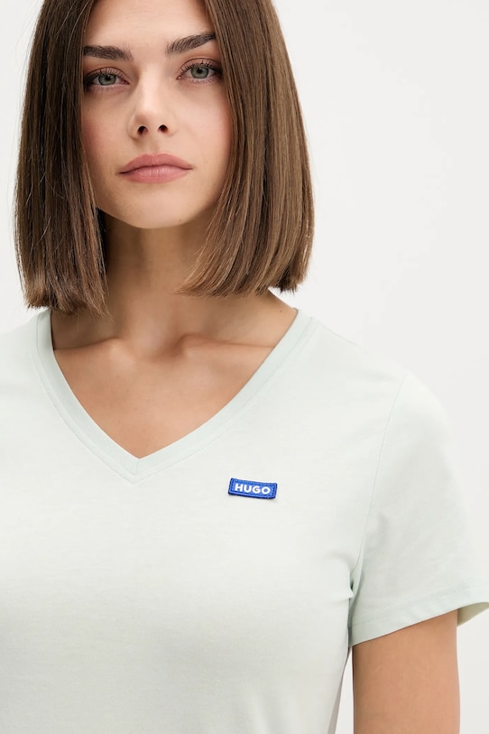 Эта футболка из коллекции Hugo Blue выполнена из гладкого трикотажного полотна. Она изготовлена из исключительно комфортного хлопкового материала. - Модель изготовлена из волокон, полученных с использованием экологически безопасных производственных процессов, что позволяет снизить воздействие на окружающую среду. - Простой дизайн, не стесняющий движений. - Декоративный, заостренный вырез. - Тонкий, эластичный трикотаж. - Длина: 60,5 см. - Ширина под мышками: 43 см. - Размеры указаны для размера: S.