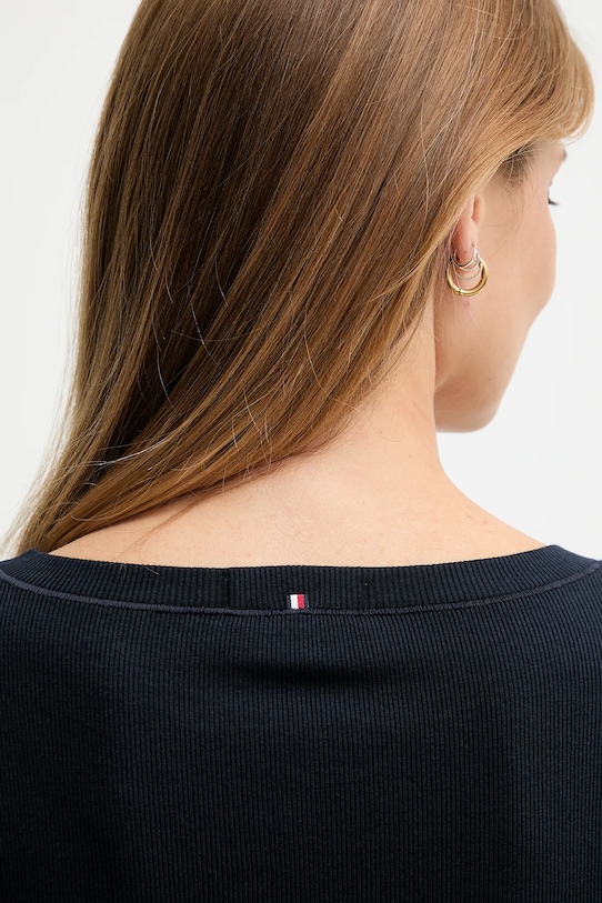 Эта футболка из коллекции Tommy Hilfiger выполнена из тонкой, эластичной ткани. Модель выполнена из исключительно комфортного материала с высоким содержанием хлопка. - Эта модель содержит регенерированные хлопковые волокна. Новые волокна и пряжа производятся из старых текстильных отходов и используются для производства новой одежды. - Приталенный крой, подчеркивающий силуэт. - Классический круглый вырез. - Короткий рукав. - Модель выполнена из трикотажного полотна в рубчик. - Длина: 48 см. - Ширина под мышками: 35 см. - Размеры указаны для размера: S.