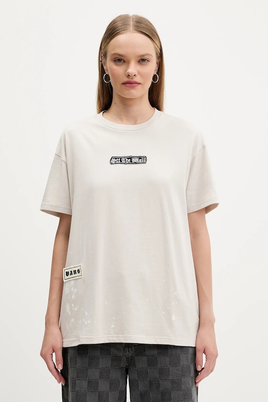 Хлопковая футболка Vans, бежевый
