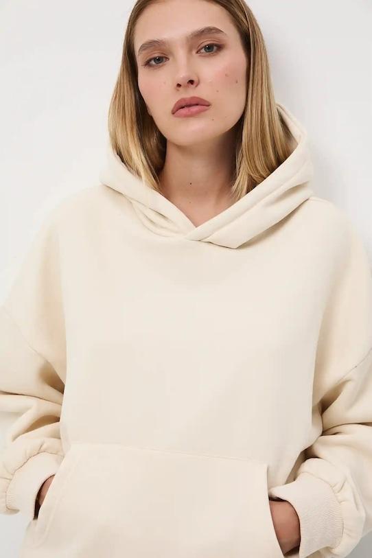 Толстовка с капюшоном из коллекции Medicine. Изготовлена из гладкого трикотажа. - Большой размер. - Длинный рукав. - Заниженная линия плеча. - Модель с капюшоном. - Практичный вставной карман-кенгуру спереди. - Отделка ребер. - Нежный, мягкий и приятный на ощупь трикотаж. - Гладкая трикотажная ткань. - Длина: 65 см. - Длина рукава (от капюшона): 73,7 см. - Ширина груди: 62 см. - Размеры указаны для размера: S.