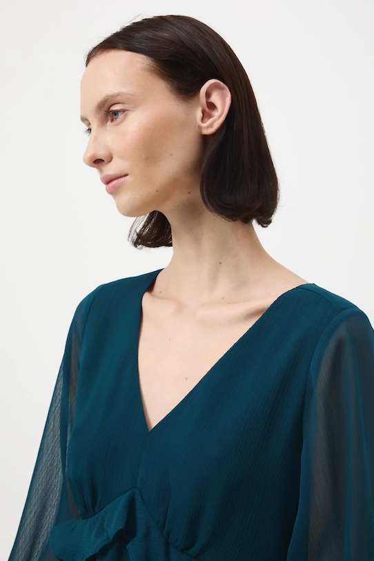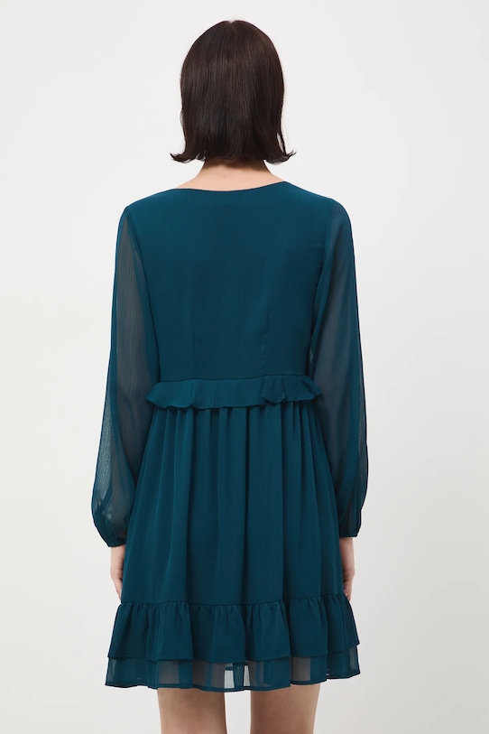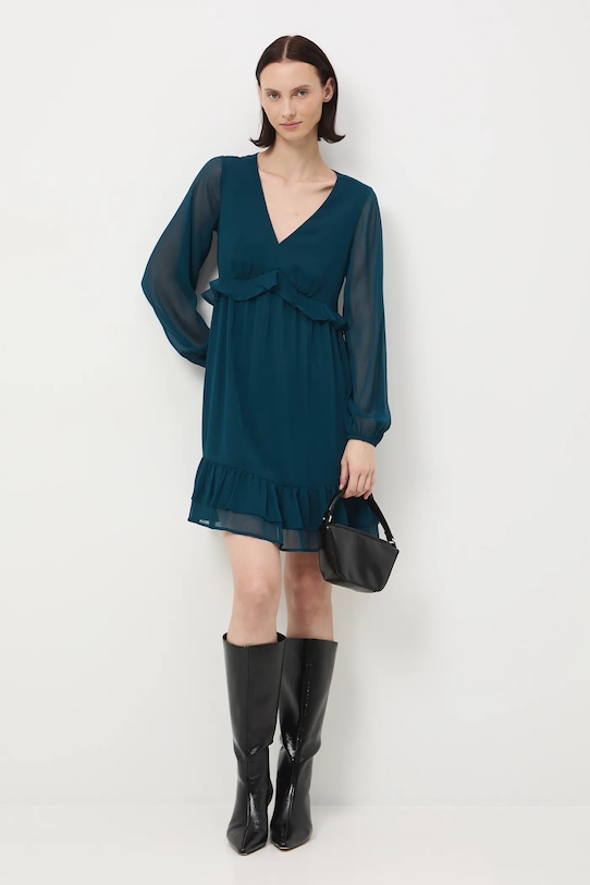 Платье из коллекции Medicine. Расклешенный фасон из гладкой ткани. - Расклешенный крой. - Длинные рукава. - Рукава отделаны резинкой. - Острый вырез. - Застежка-молния. - Модель с декоративными оборками. - Модель изготовлена из прозрачного материала. - Дополнительный слой материала в виде подкладки. - Гладкая ткань. - Модель мини-длины. - Ширина талии: 36,5 см. - Длина рукава: 62,5 см. - Длина: 93 см. - Ширина груди: 47,5 см. - Размеры указаны для размера: S.