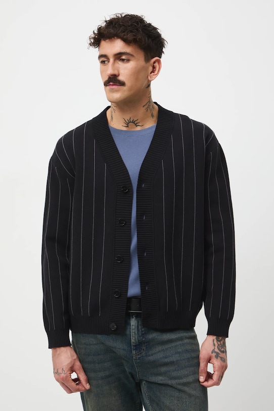 Кардиган из коллекции Medicine. Острый вырез горловины, трикотаж с узором. - Кардиган свободного кроя обеспечивает комфорт и свободу движений. Он дополняет самые разные стили, подчёркивая непринуждённый характер любого наряда. - Острый вырез. - Длинный рукав. - Заниженная линия плеча. - Застежка на пуговицы. - Отделка ребер. - Полосатый рисунок. - Длина рукава (от горловины): 76,5 см. - Длина: 70 см. - Ширина груди: 57 см. - Размеры указаны для размера: M.