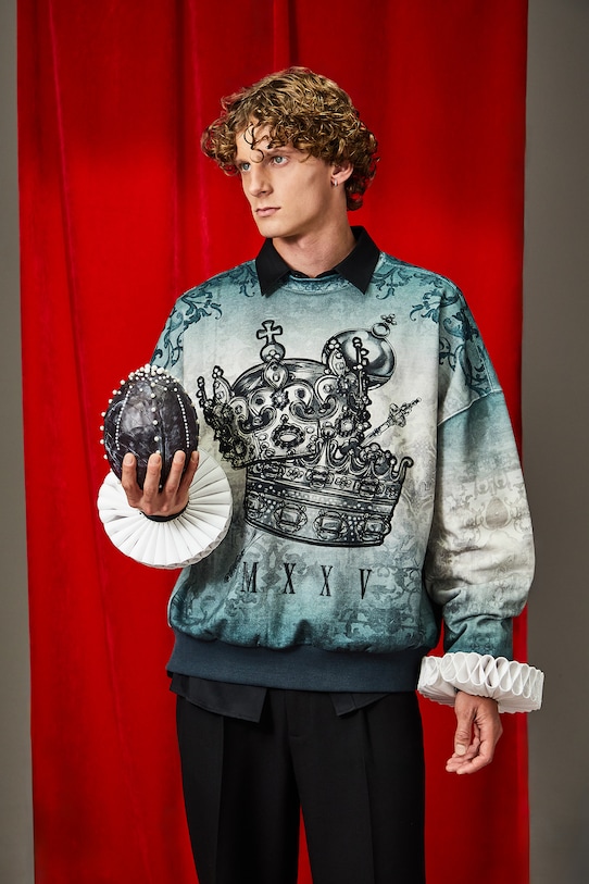 Эта лимитированная коллекция была создана в сотрудничестве с Королевским замком на Вавеле - одним из важнейших музеев Польши, местом, чья история восходит к правлению Болеслава Храброго. Вдохновленные сокровищами польского и европейского культурного наследия, дизайны коллекции переносят нас в мир королевских гобеленов и регалий, символов величия монарха. Коллекция включает в себя футболки, толстовки, платья, рубашки, аксессуары и украшения. Принты и детали напрямую заимствованы из произведений искусства, среди которых особое место занимают гобелены эпохи Возрождения Сигизмунда Августа - одна из самых ценных коллекций такого рода в Европе и единственная в мире коллекция тканей XVI века, заказанная одним королем. Замысловатые узоры с животными, растениями и пейзажами, вытканные золотыми и серебряными нитями, были перенесены в современный стиль. В коллекции также отражена символика власти: короны, регалии и средневековые доспехи, которые веками были атрибутами монаршей власти. Эти современные силуэты воплощены в деталях, принтах и ​​отделке, придавая одежде новый смысл. Сотрудничество с Королевским замком Вавель - это не просто коллекция одежды, а целое приключение - путешествие сквозь века, запечатлённое в тканях и деталях. Каждое изделие коллекции несёт в себе частичку королевского наследия, перенесённую в наши дни, - это мода, которая выходит за рамки сезонности, сочетая историю и традиции с современной эстетикой.