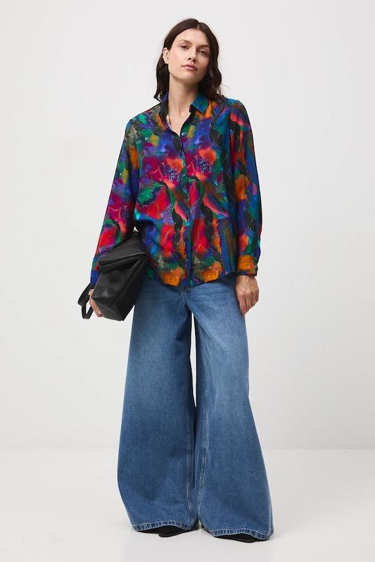 - Рубашка прямого кроя мягко облегает фигуру, но не подчеркивает ее, обеспечивая свободу движений.