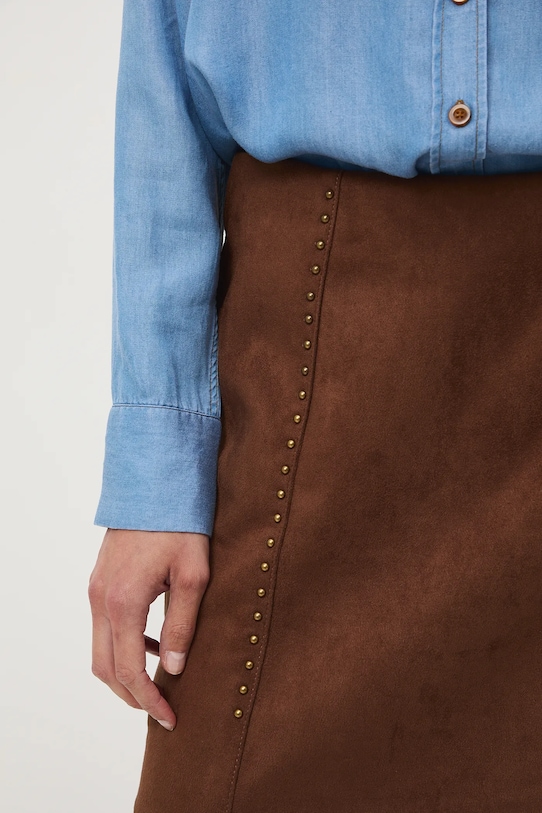 Юбка из коллекции Medicine. Модель прямого кроя из искусственной замши. - Простой дизайн. - Застежка-молния. - Модель с декоративными заклепками. - Декоративная строчка. - Модель мини-длины. - Модель выполнена из искусственной замши. - Длина спереди: 43 см. - Длина сзади: 44,5 см. - Ширина талии: 36,5 см. - Ширина бедер: 51 см. - Размеры указаны для размера: S.