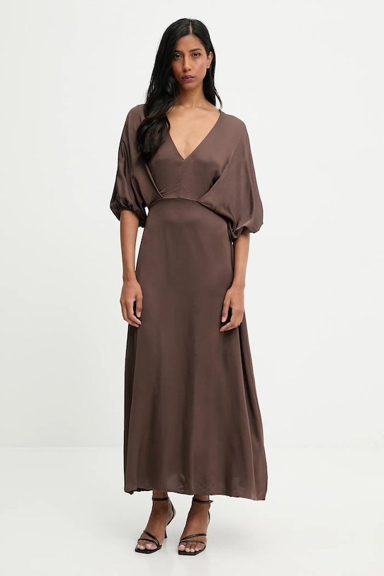 Это платье из коллекции Answear.LAB выполнено из тонкой, неэластичной ткани. Модель выполнена из исключительно комфортного материала с высоким содержанием вискозы. - Расклешенный крой. - Декоративный, заостренный вырез. - Короткий рукав. - Рукава отделаны резинкой. - Узкий эластичный пояс. - Модель без подкладки. - Модель без застежки. - Длина: 137,5 см. - Ширина под мышками: 40 см. - Ширина талии: 33 см. - Размеры указаны для размера: S.