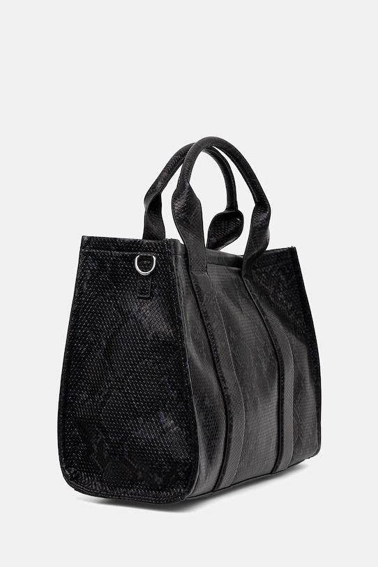 Большая сумка из коллекции Answear.Lab. Модель на молнии, выполнена из экокожи. - Застежка-молния. - Модель на подкладке. - Вмещает формат А4. - Три внутренних кармана: один на молнии, два накладных. - Сумка для ношения в руке или на плече. - Имеет ручки и съемный регулируемый ремень. - Входящий в комплект тканевый чехол защищает изделие от пыли. - Минимальная длина ремешка: 99 см. - Максимальная длина ремня: 106 см. - Длина ручки: 44 см. - Глубина: 16 см. - Высота: 30 см. - Ширина у основания: 38 см.