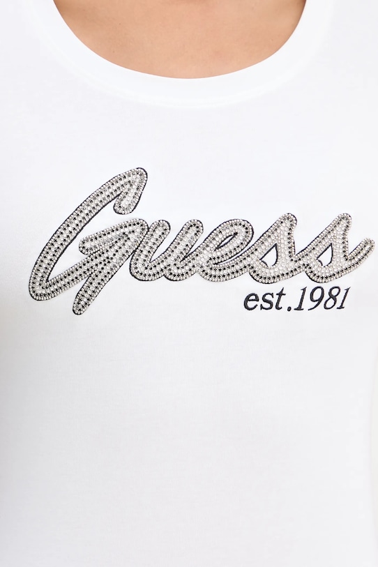 Футболка из коллекции Guess выполнена из трикотажного полотна с аппликацией. Оптимальная эластичность материала обеспечивает полную свободу движений. - Органический хлопок выращивается без использования вредных химикатов, химических пестицидов и искусственных удобрений. - Приталенный крой, подчеркивающий силуэт. - Классический круглый вырез. - Короткий рукав. - Тонкий, эластичный трикотаж. - Длина: 60 см. - Ширина под мышками: 43 см. - Размеры указаны для размера: S.
