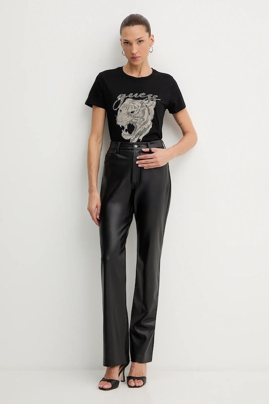 Эта футболка из коллекции Guess выполнена из тонкой, слегка эластичной ткани. Модель выполнена из исключительно комфортного хлопкового материала. - Этот продукт изготовлен из сертифицированного органического хлопка, который выращен и собран из растений, не содержащих ГМО, без использования химических удобрений и пестицидов. - Простой дизайн, не стесняющий движений. - Круглый ребристый вырез. - Модель с принтом и стразами. - Длина: 64 см. - Ширина под мышками: 41 см. - Размеры указаны для размера: S.
