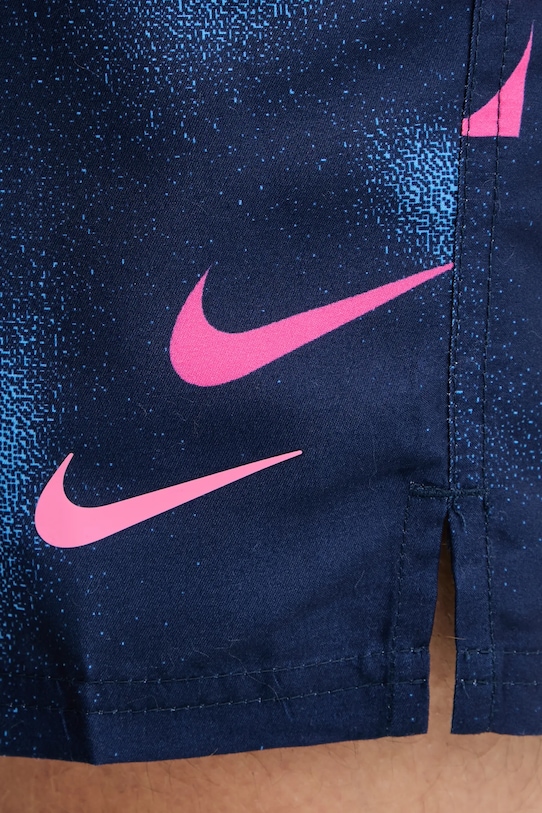 Плавки-шорты из коллекции Nike. Изготовлены из узорчатого материала. - Данное изделие частично изготовлено из переработанного полиэстера. - Простой дизайн, не стесняющий движений. - Эластичный пояс со шнурками. - Два боковых накладных кармана. - Сетчатая внутренняя подкладка для дополнительного комфорта. - Ширина талии: 36 см. - Ширина бедер: 50 см. - Высота талии: 32 см. - Длина внешней части штанины: 44 см. - Размеры указаны для размера: M.