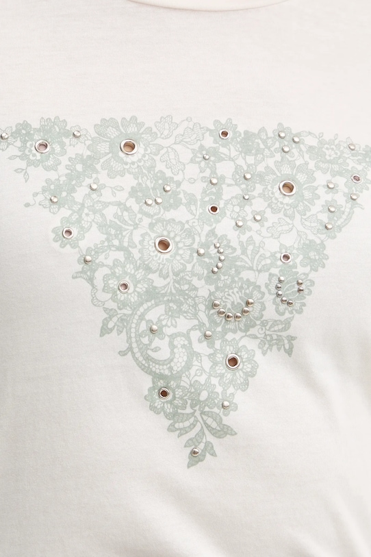 Эта футболка из коллекции Guess выполнена из тонкой, слегка эластичной ткани. Модель выполнена из исключительно комфортного хлопкового материала. - Этот продукт изготовлен из сертифицированного органического хлопка, который выращен и собран из растений, не содержащих ГМО, без использования химических удобрений и пестицидов. - Простой дизайн, не стесняющий движений. - Модель с принтом и стразами. - Круглый ребристый вырез. - Длина: 63 см. - Ширина под мышками: 48 см. - Размеры указаны для размера: S.