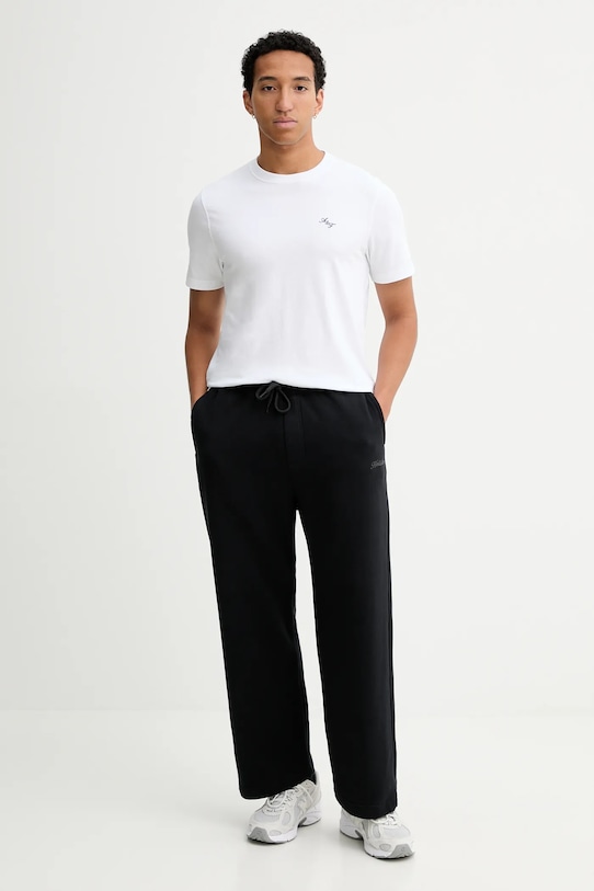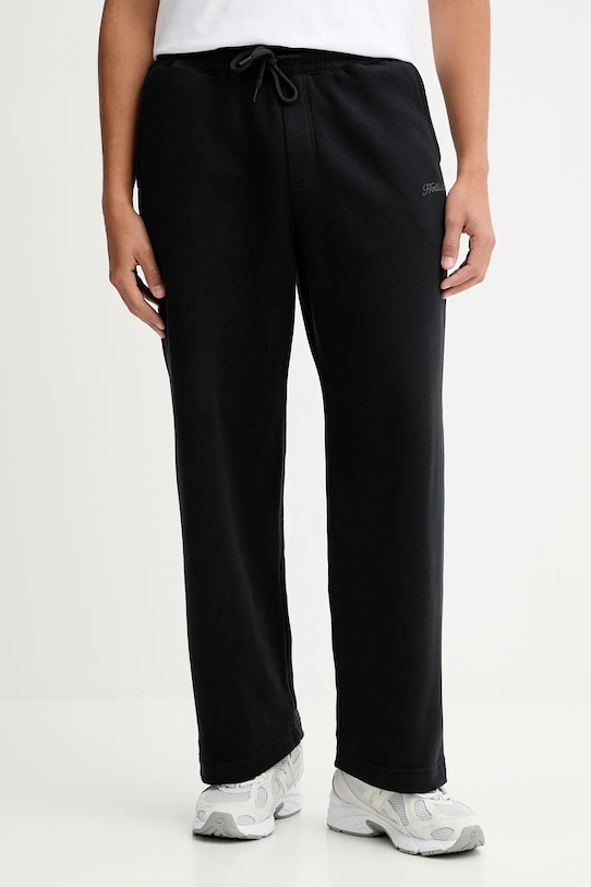 Спортивные брюки из коллекции Hollister Co. Модель выполнена из плотной, слегка эластичной ткани, мягкой и приятной на ощупь. - Данное изделие частично изготовлено из переработанного полиэстера. - Брюки свободные в области бедер и ягодиц. - Прямая нога полной длины. - Эластичный пояс и дополнительная регулировка ширины с помощью шнурков для предотвращения сползания во время движения. - Два боковых накладных кармана. - Скрытый боковой карман с застежкой на кнопку. - Мягкая внутренняя отделка обеспечивает высокий комфорт использования и оптимальный тепловой комфорт. - Ширина талии: 40 см. - Ширина бедер: 61,5 см. - Высота талии: 35,5 см. - Ширина штанины внизу: 27 см. - Ширина штанины: 36 см. - Длина внешней части штанины: 107,5 см. - Размеры указаны для размера: M.