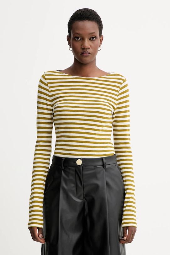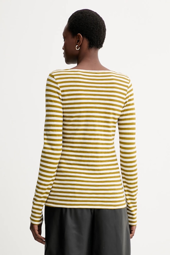 Лонгслив из коллекции Marc O'Polo. Изготовлен из тонкой, эластичной ткани. - Этот продукт изготовлен из сертифицированного органического хлопка, который выращен и собран из растений, не содержащих ГМО, без использования химических удобрений и пестицидов. - Приталенный крой. - Круглый вырез. - Узорчатое трикотажное полотно. - Длина рукава: 68 см. - Длина: 69 см. - Ширина под мышками: 42 см. - Размеры указаны для размера: S.