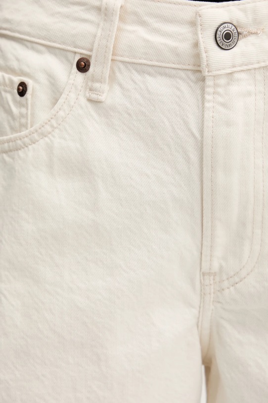Джинсовые шорты Abercrombie & Fitch. Изготовлены из исключительно комфортного материала с высоким содержанием хлопка. - Модель с высокой талией, застежкой на пуговицы и молнию. - Три накладных кармана спереди. - Два накладных кармана на ягодицах. - Модель с декоративной бахромой. - Ширина талии: 36 см. - Ширина бедер: 27 см. - Высота талии: 33 см. - Ширина штанины внизу: 34 см. - Длина штанины: 34 см. - Размеры указаны для размера: 27.