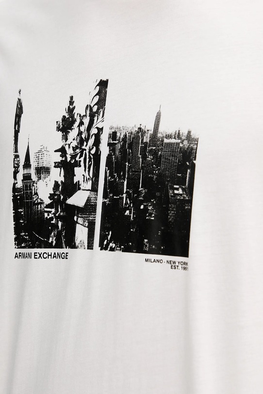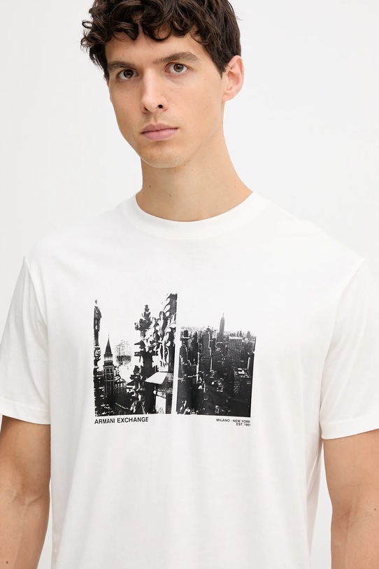 Эта футболка из коллекции Armani Exchange выполнена из тонкой, эластичной ткани. Эта модель выполнена из исключительно комфортного и дышащего материала, идеально подходящего для теплого времени года. - Продукт из серии «Инвестирование в Better Cotton». Better Cotton - ведущая в мире инициатива по устойчивому развитию хлопка, миссия которой - помочь хлопковым общинам выживать и процветать, одновременно защищая и восстанавливая окружающую среду. - Свободный крой, обеспечивающий полную свободу движений. - Короткий рукав. - Крой рукава со спущенной линией плеча не ограничивает подвижность. - Классический круглый вырез. - Модель с принтом. - Длина: 74 см. - Ширина под мышками: 57 см. - Размеры указаны для размера: M.