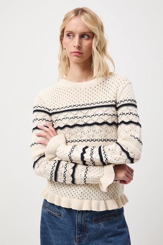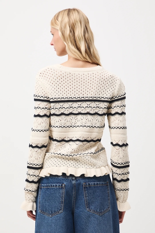 Свитер из коллекции Medicine. Круглый вырез горловины и ажурная вязка. - Этот облегающий свитер плотно облегает тело и естественно подчёркивает силуэт. Подходит как для элегантных, так и для повседневных образов. - Длинный рукав. - Круглый вырез. - Декоративная отделка. - Модель выполнена из ажурного материала. - Полосатый рисунок. - Длина рукава: 61 см. - Длина: 55 см. - Ширина груди: 43 см. - Размеры указаны для размера: S.