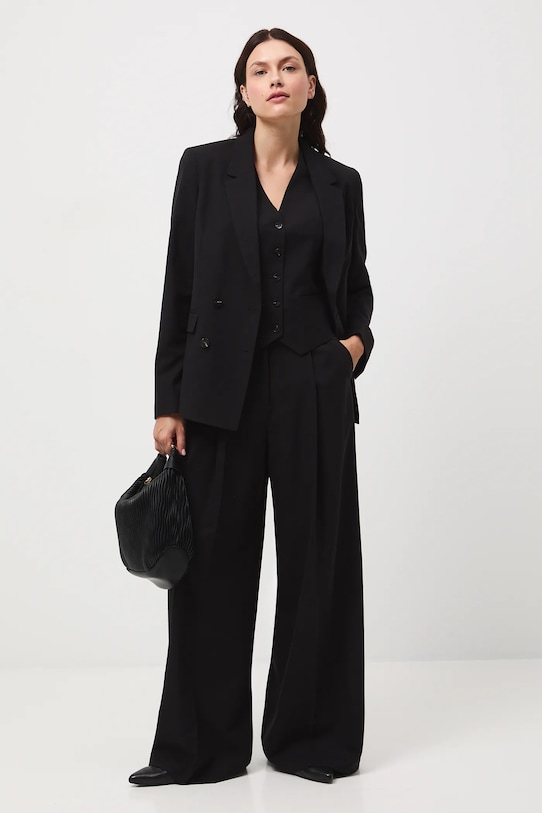 - Однобортный пиджак с застежкой на пуговицы.